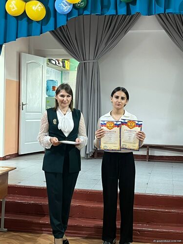 На торжественной линейке, посвященной окончанию четверти, заместитель по УВР Кулькова Н.М. наградила обучающихся нашей школы грамотами и благодарственными письмами за победы в школьном этапе олимпиад, участие в конкурсах и акциях.
