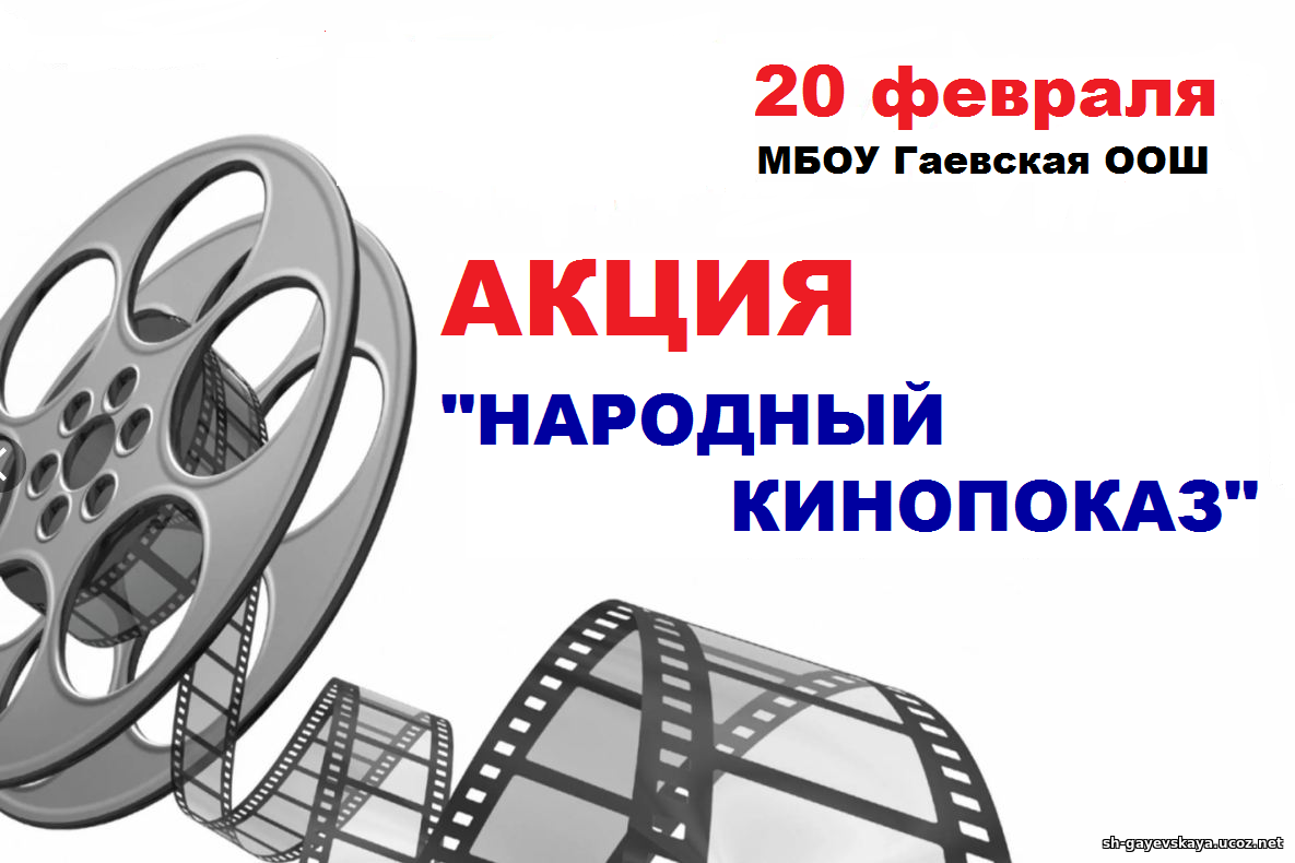 20 февраля 2026 года в МБОУ Гаевской ООШ состоится просмотр документальных и художественных фильмов в рамках акции «Народный кинопоказ», посвященной сохранению памяти о героическом прошлом нашей страны и боевой славе во времена Великой Отечественной войны.