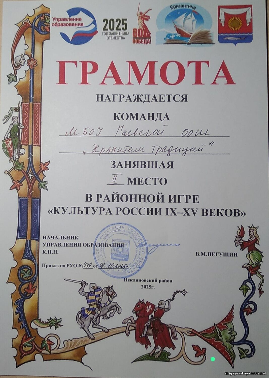 17 октября 2025 года обучающиеся 7-8 классов МБОУ Гаевской ООШ приняли участие в районном мероприятии, исторической игре «Культура России IX-XV веков», прошедшей на базе МБОУ Троцкой СОШ. Мероприятие было посвящено богатству и разнообразию культурных традиций России эпохи Средневековья.
