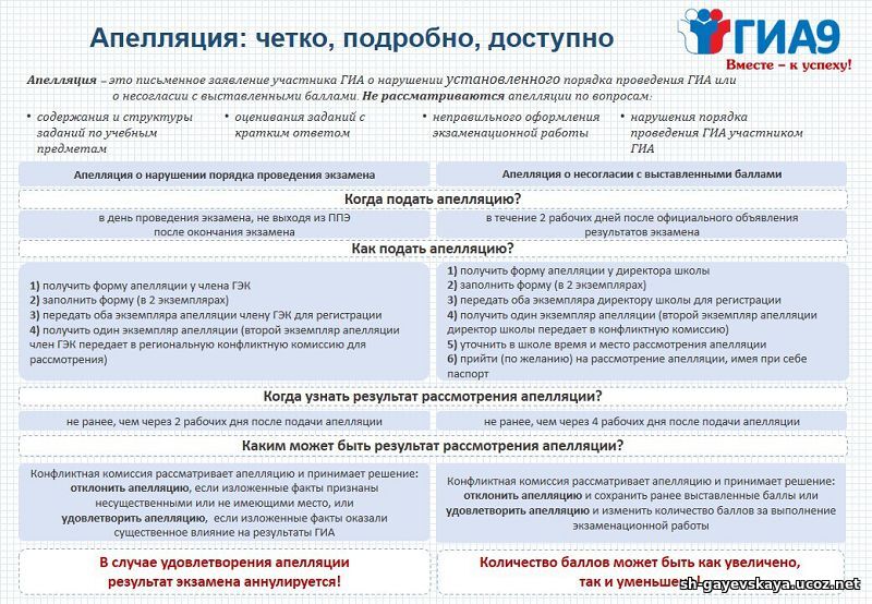 Участники ГИА-9 вправе подать апелляцию как по процедуре проведения экзаменов, так и о несогласии с полученными результатами, в апелляционную комиссию.