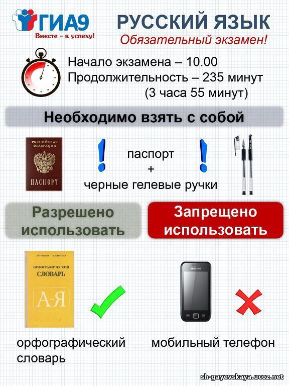 Для проведения ГИА на территории Российской Федерации и за ее пределами предусматривается единое расписание экзаменов. По каждому учебному предмету устанавливается продолжительность проведения экзаменов.