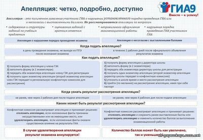 Не рассматриваются апелляции по вопросам: содержания и структуры экзаменационных материалов по учебным предметам; связанных с нарушением самими участниками ГИА 9 требований порядка проведения государственной итоговой аттестации; неправильного оформления экзаменационной работы.